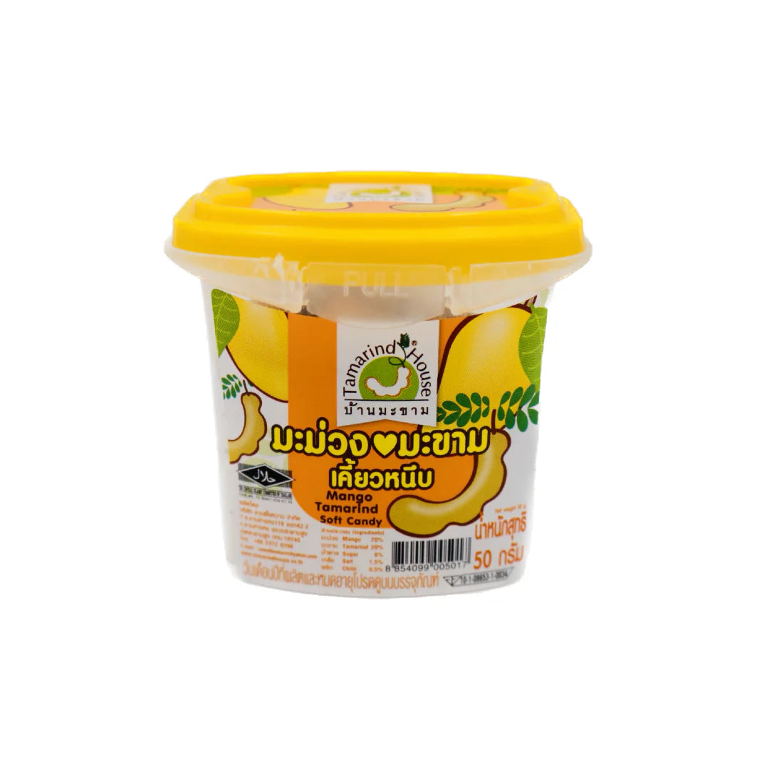 Tamarind House Mango Tamarind Soft Candy 50g. Made with real mango and tamarind fruit, this 50g pack offers a unique blend of sweet and tangy flavours. With its soft and chewy texture, it's a delightful treat for any candy lover. Enjoy the natural goodness in every bite.