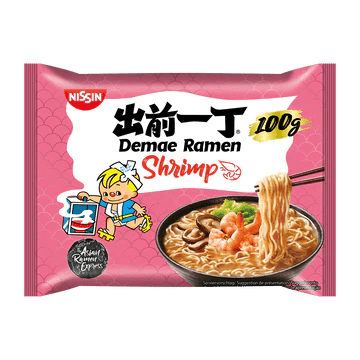 Expertly crafted by NISSIN, the Demae Ramen in shrimp flavor is a delicious and convenient way to satisfy your cravings. Made with high-quality ingredients, this 100g pack offers a mouth-watering experience with every bite. Elevate your ramen game with NISSIN Demae Ramen - Shrimp.