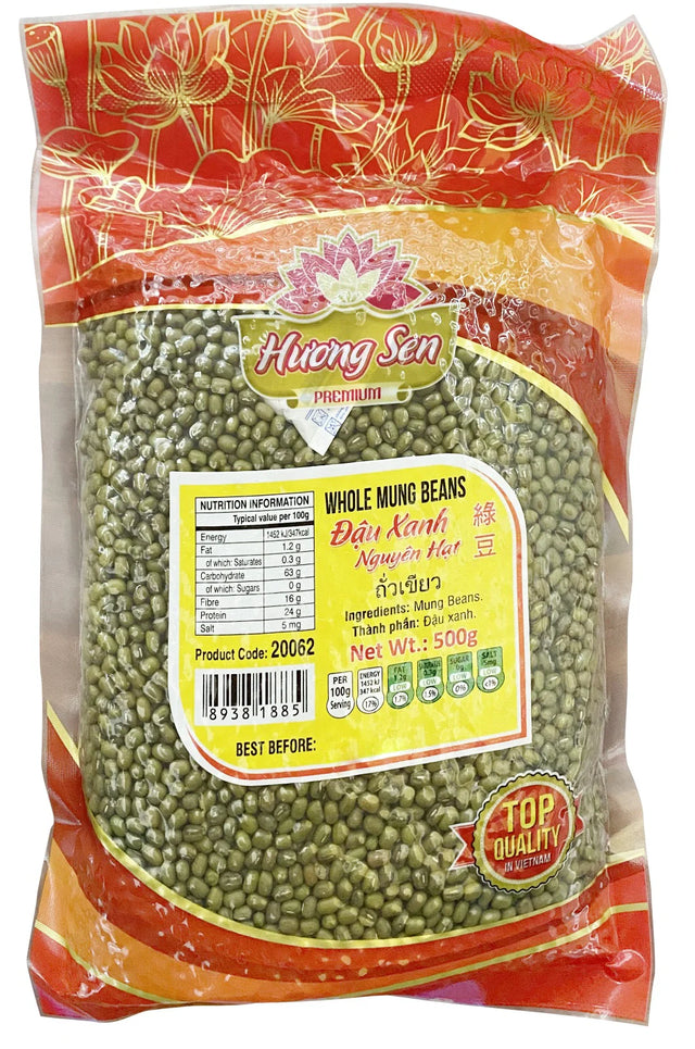 HUONG SEN Whole Mung Beans 500g offer a versatile and nutritious ingredient ideal for a variety of Asian dishes. These premium mung beans are rich in protein and fiber, supporting a balanced diet. Perfect for soups, salads, and desserts, they cook evenly to a tender texture, enhancing both flavor and nutritional value in your meals. Packaged in a convenient 500g bag, they ensure freshness and easy storage.