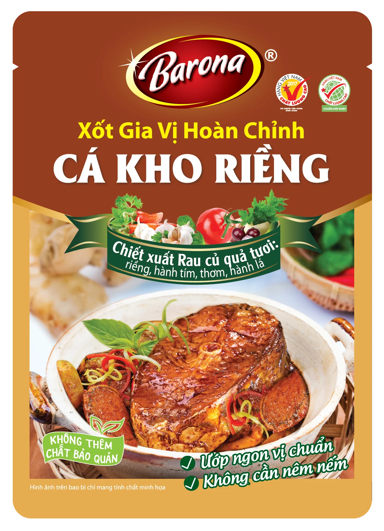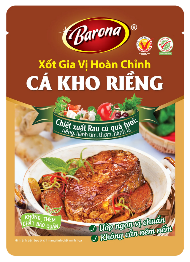 BARONA Sauce for Galangal Simmered Fish (Ca kho Rieng) 80g is expertly formulated to bring out the deep, rich flavors of this traditional Vietnamese dish. Infused with aromatic galangal, this sauce enhances the natural taste of simmered fish, delivering a harmonious blend of savory and fragrant notes. Packaged in a convenient 80g size, it offers precise seasoning for authentic home cooking, enabling chefs to replicate the complex flavors of Ca kho Rieng with ease and consistency.