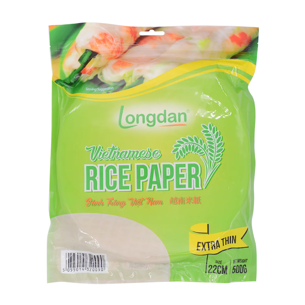 Longdan Vietnamese Rice Paper Extra Thin 500g. Longdan Rice Paper made with a combination of rice and tapioca. They are almost translucent, glutinous and super thin wrappers that can be filled with almost anything.