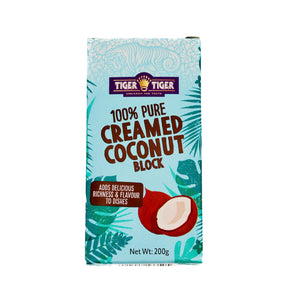Enhance your cooking with TIGER TIGER Creamed Coconut Block. Made from 100% pure coconut milk, this rich and creamy block adds a delicious tropical flavor to your dishes. With a convenient 200g size, it's perfect for enhancing curries, stews, and desserts. Enjoy the exotic taste and aroma of real coconut with TIGER TIGER Creamed Coconut Block.