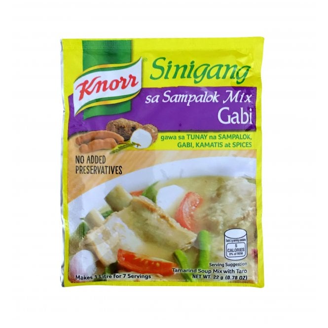 Experience the perfect balance of sour and savory with KNORR Sinigang Sa Sampalok Mix Gabi 22g. Made with real sampalok (tamarind), this mix boasts a rich and authentic flavor that will elevate any Filipino dish. With just the right amount of gabi (taro), this mix will surely be a staple in your pantry.