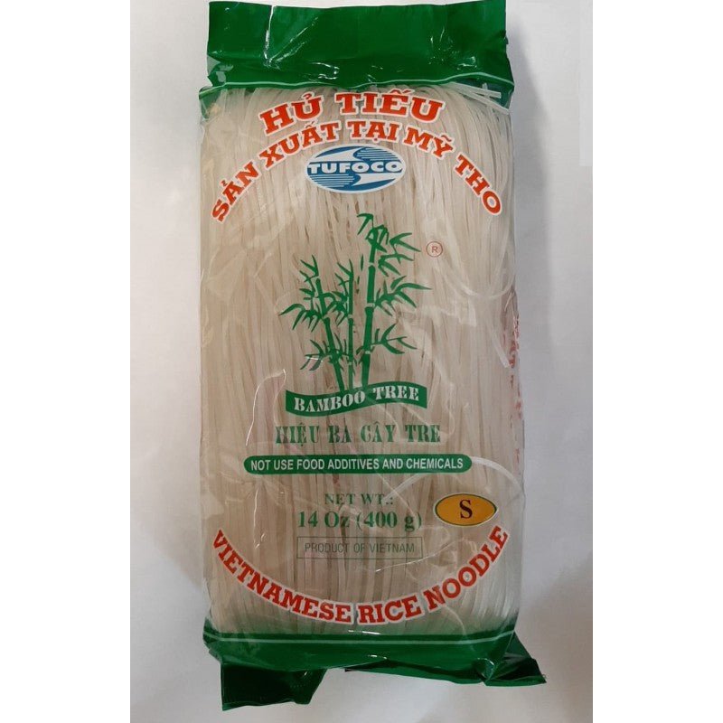 "Hu Tieu" refers to a type of Vietnamese noodle soup that typically includes rice noodles and a savory broth with various ingredients such as seafood, pork, and herbs. If "BAMBOO TREE" is the brand name, the product you mentioned is likely rice noodles specifically designed for making Hu Tieu.